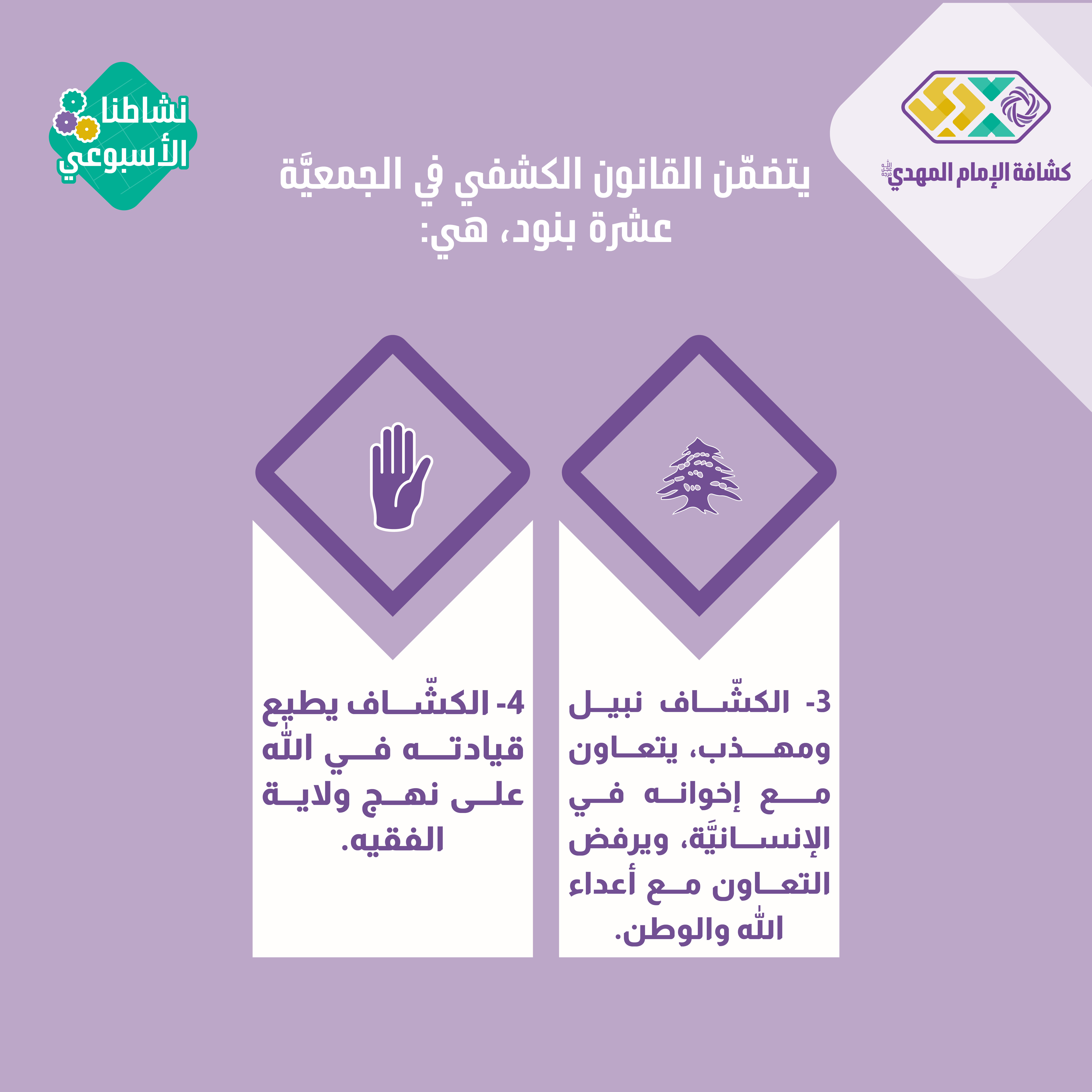 4- الكشّاف يطيع قيادته في الله على نهج ولاية الفقيه.