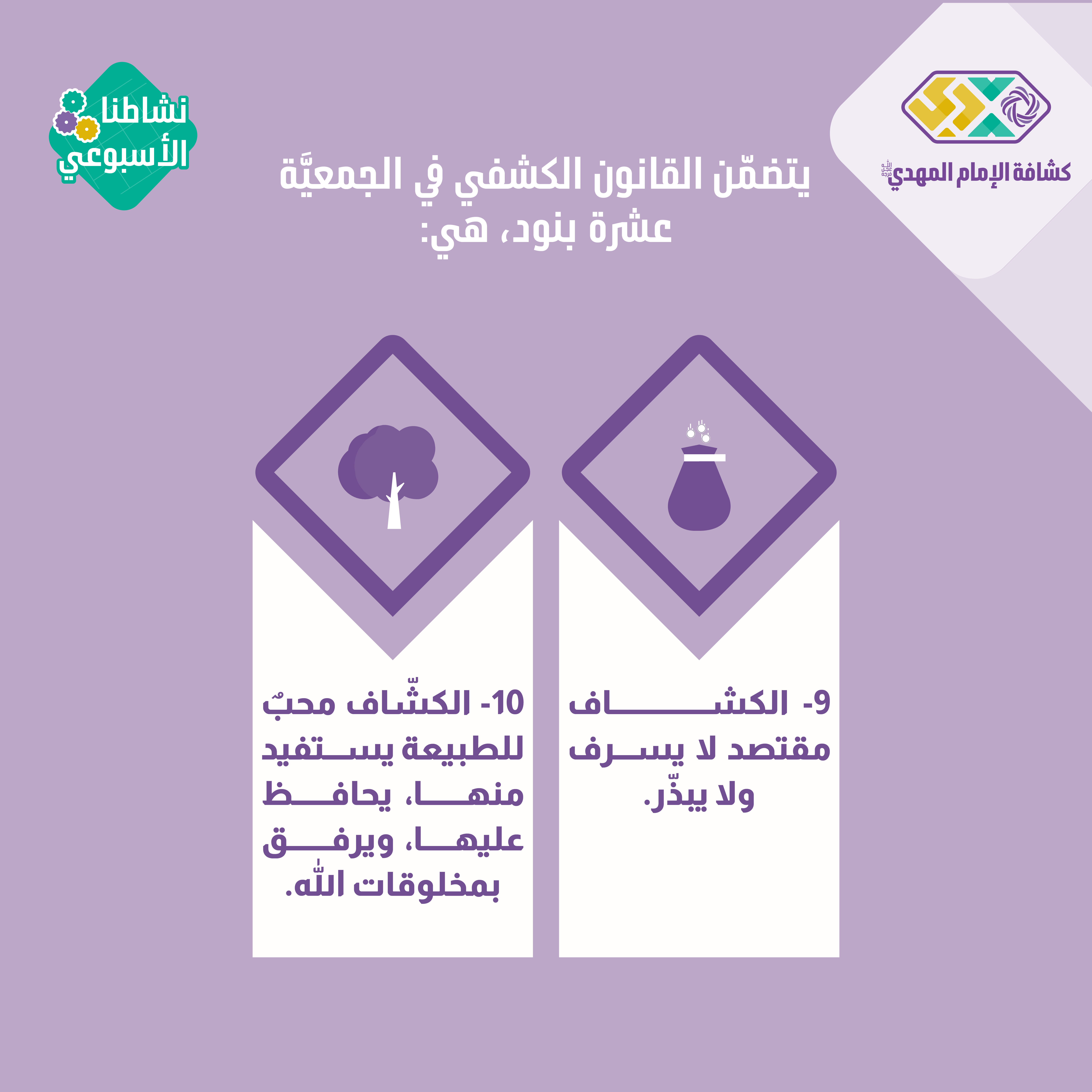 10- الكشّاف محبٌ للطبيعة يستفيد منها، يحافظ عليها، ويرفق بمخلوقات الله.