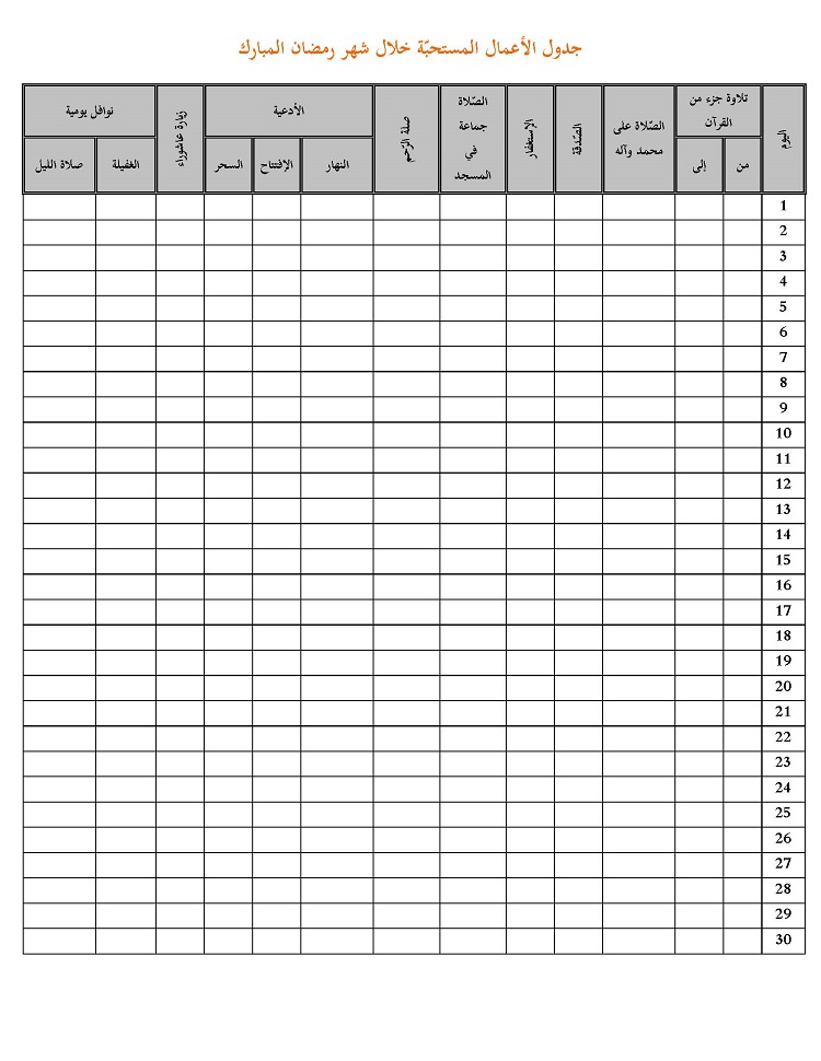 عزيزتي الدّليلة نضع بين يديك جدولًا ببعض الأعمال المستحبّة خلال أيّام وليالي الشّهر الفضيل، علّه يساعدك في استثمار هذه الأيّام النادرة بقدسيتها