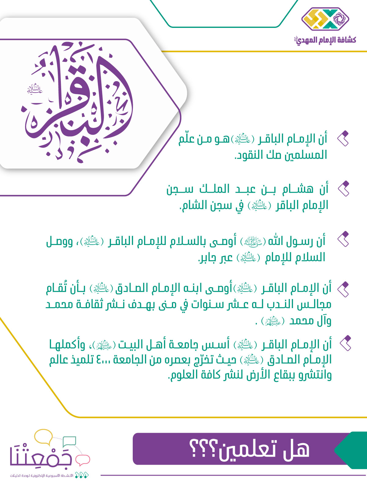 تقدم القائدة لفقرة هل تعلمين أن الإمام الباقر عليه السلام؟ |