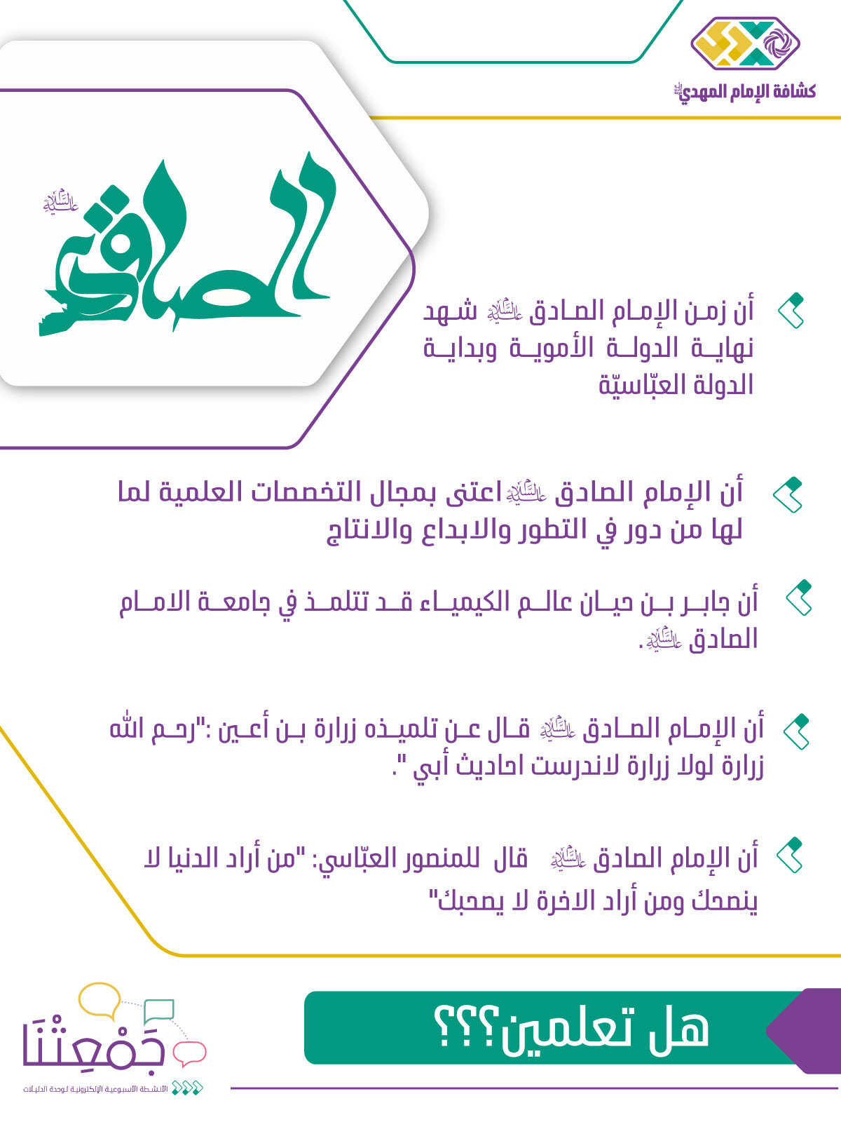 تقدّم القائدة للفقرة وتطلب من الرهط المعني عرض ما توصلن إليه من معلومات حول الإمام الصادق عليه السلام |