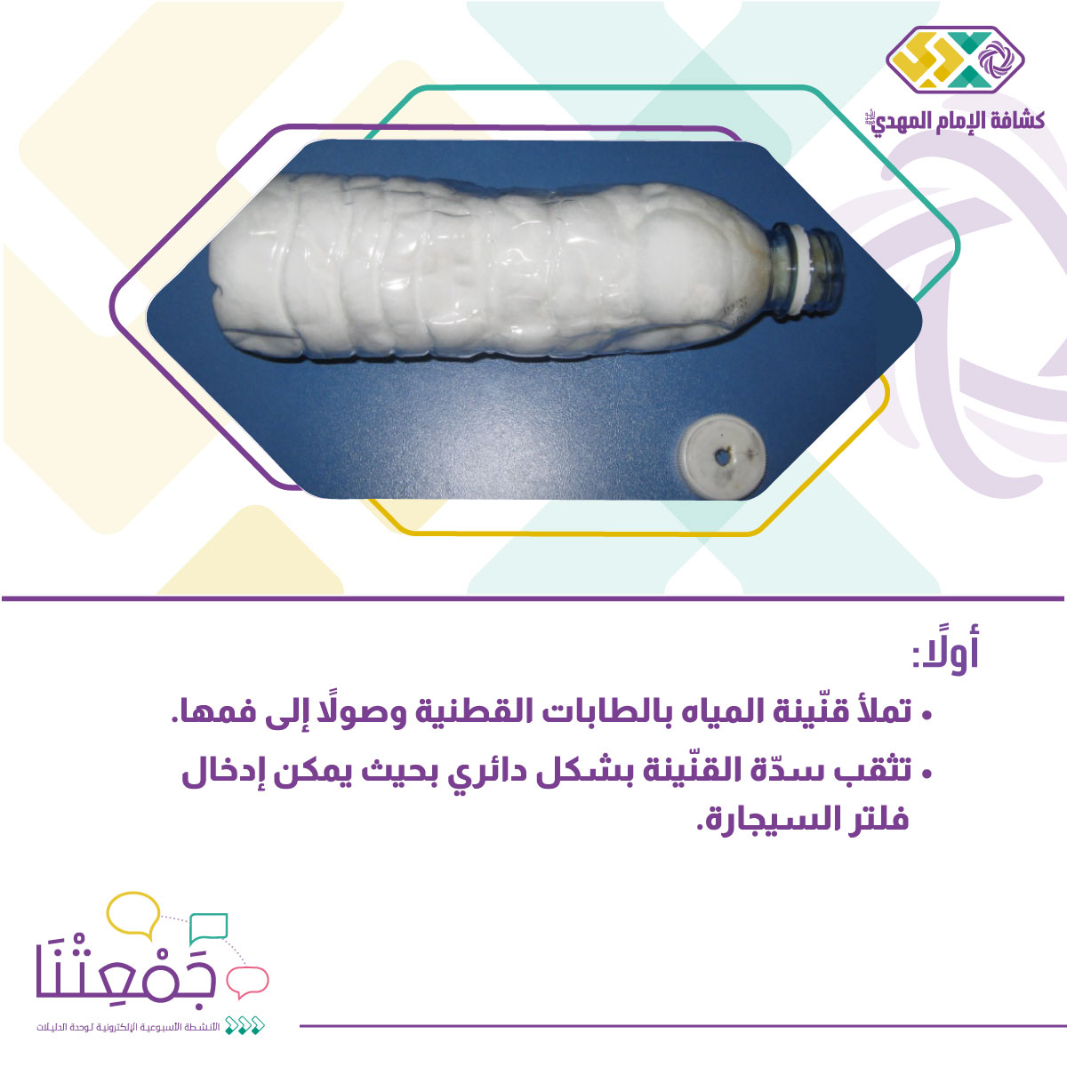 لوازم التجربة: (قنينة مياه فارغة، قطن، 5 سيجارات)