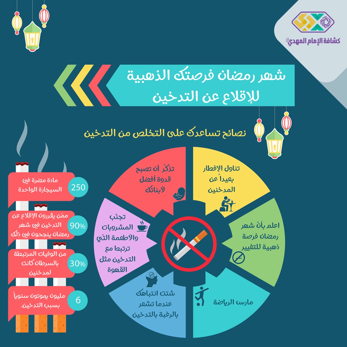 الحمد لله الذي بنعمته تتم الصالحات ..كما أصبح واضحًا جدًّا أنّ التدخين بجميع مستوياته انتشر في جميع أنحاء العالم، خصوصًا عند فئة الشباب .. في ورشتنا اليوم سنتعرف سويًّا على مضار التدخين و أضراره..