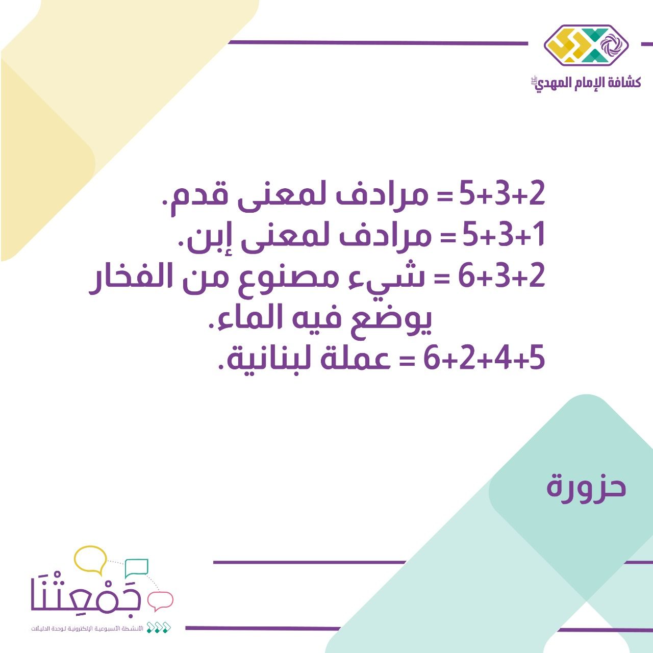 • تطلب القائدة من المجموعات حل الحزورة.