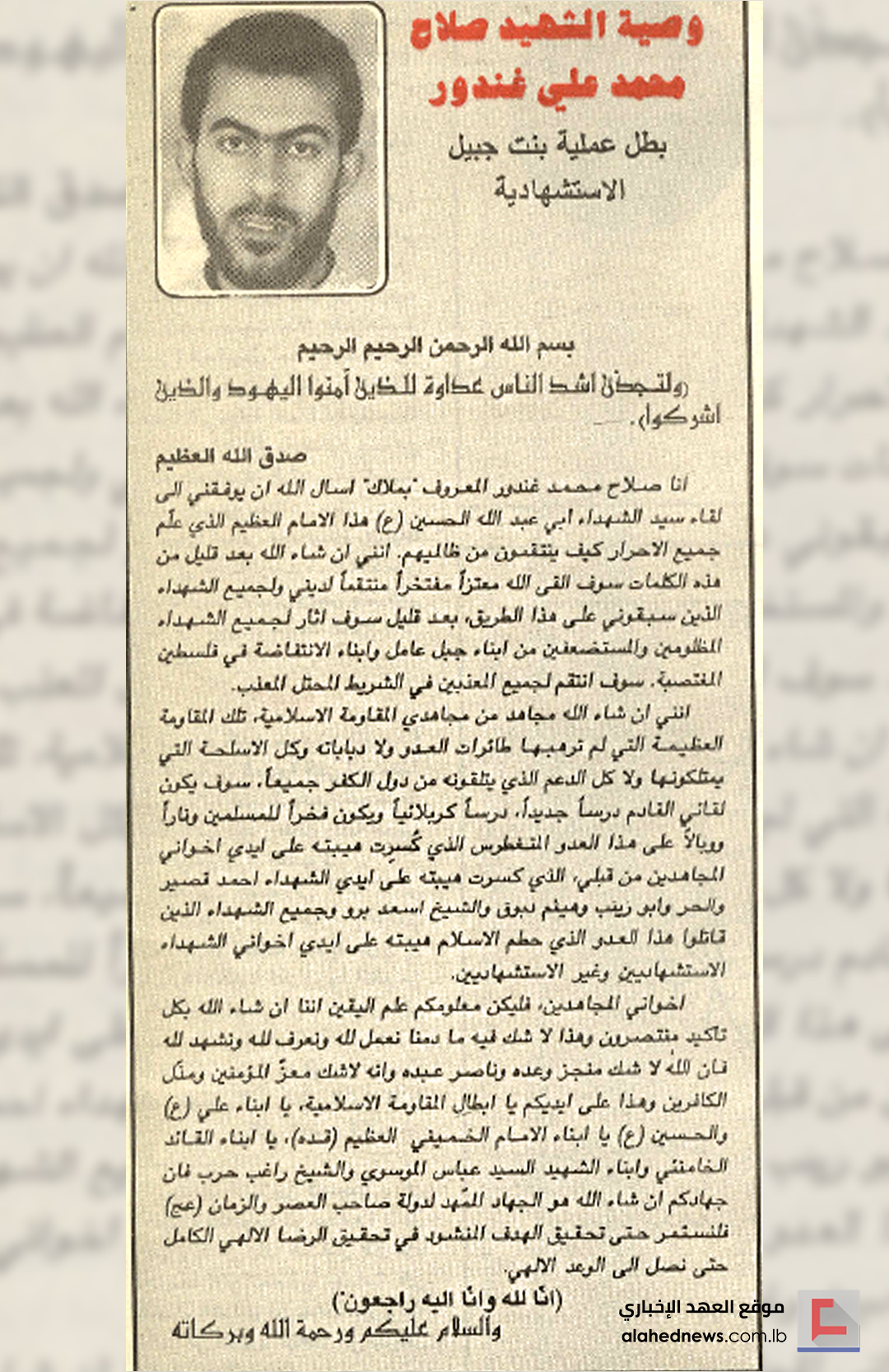 لتكون تلك البذلة الشّيء الوحيد الّذي بقي من أثرك، فتنادي بعدها الأمُّ القِدِّيسة ما ضاع الحليب اللي رضعته منّي هيك... واللّه وبيّضتلّي وجّي يا ابني عند أهل البيت (عليهم السلام).. اللّٰه يهنّيك بجنّتك يا صلاح