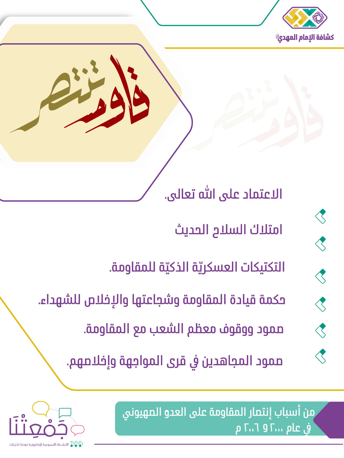 عمل مجموعات لأسباب الإنتصار على العدو الصهيوني في عامي 2000 و 2006 |