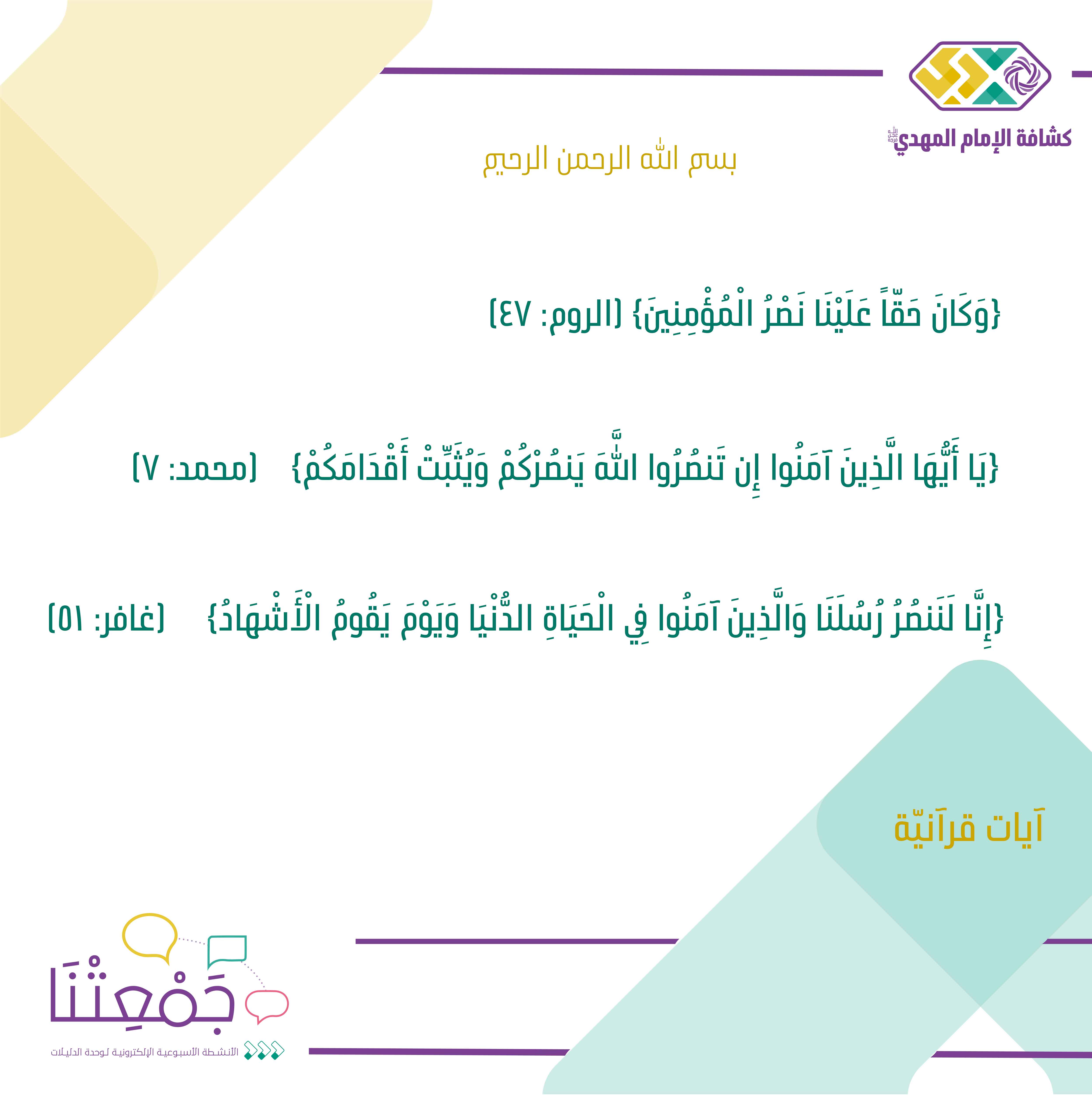 آيات قرآنية مباركة (آيات النصر) وحديث مهدوي والسلام على قائم آل محمد عج .