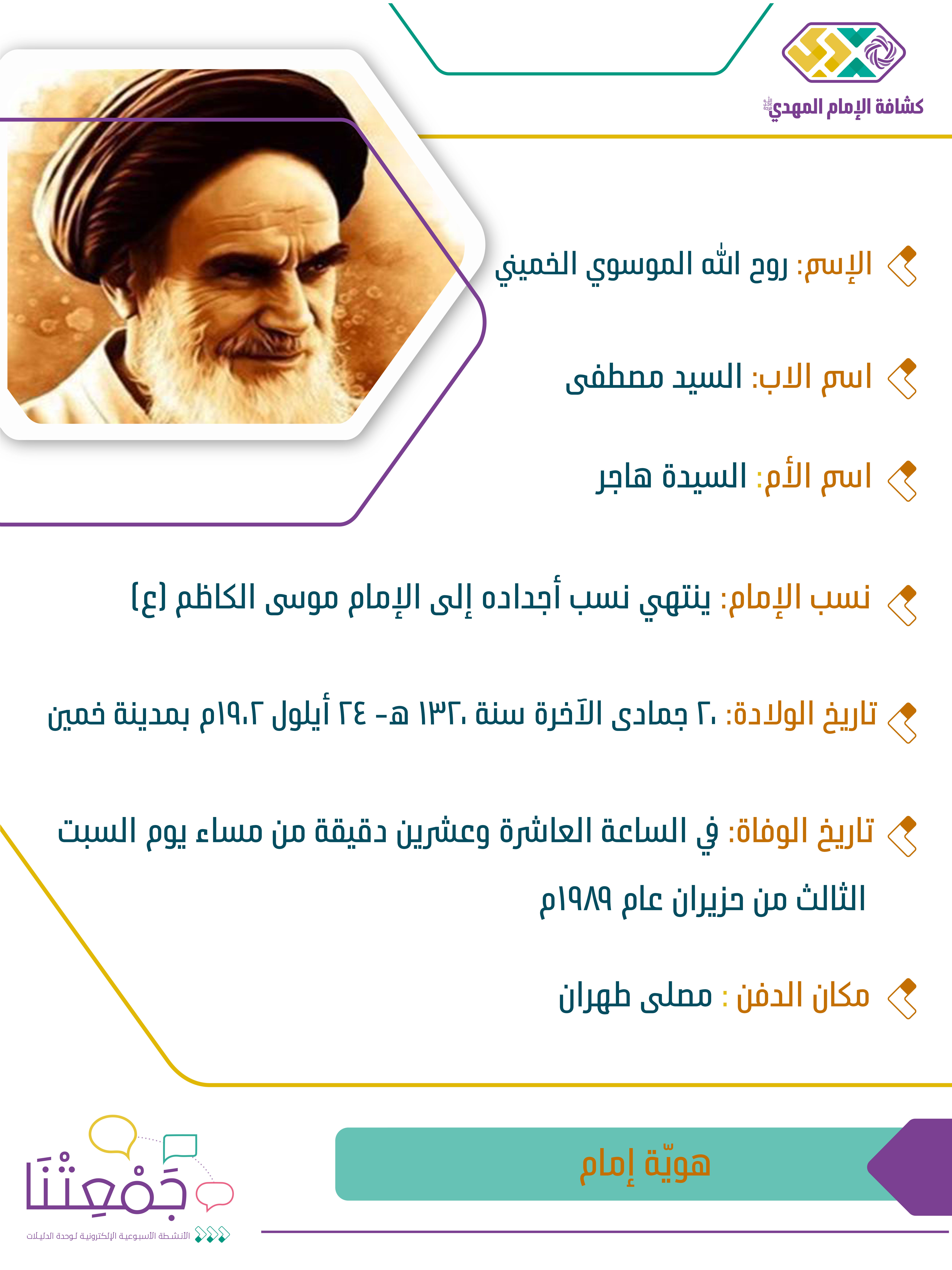 تاريخ الولادة: 20 جمادى الآخرة سنة 1320 ه- 24 أيلول 1902م بمدينة خمين