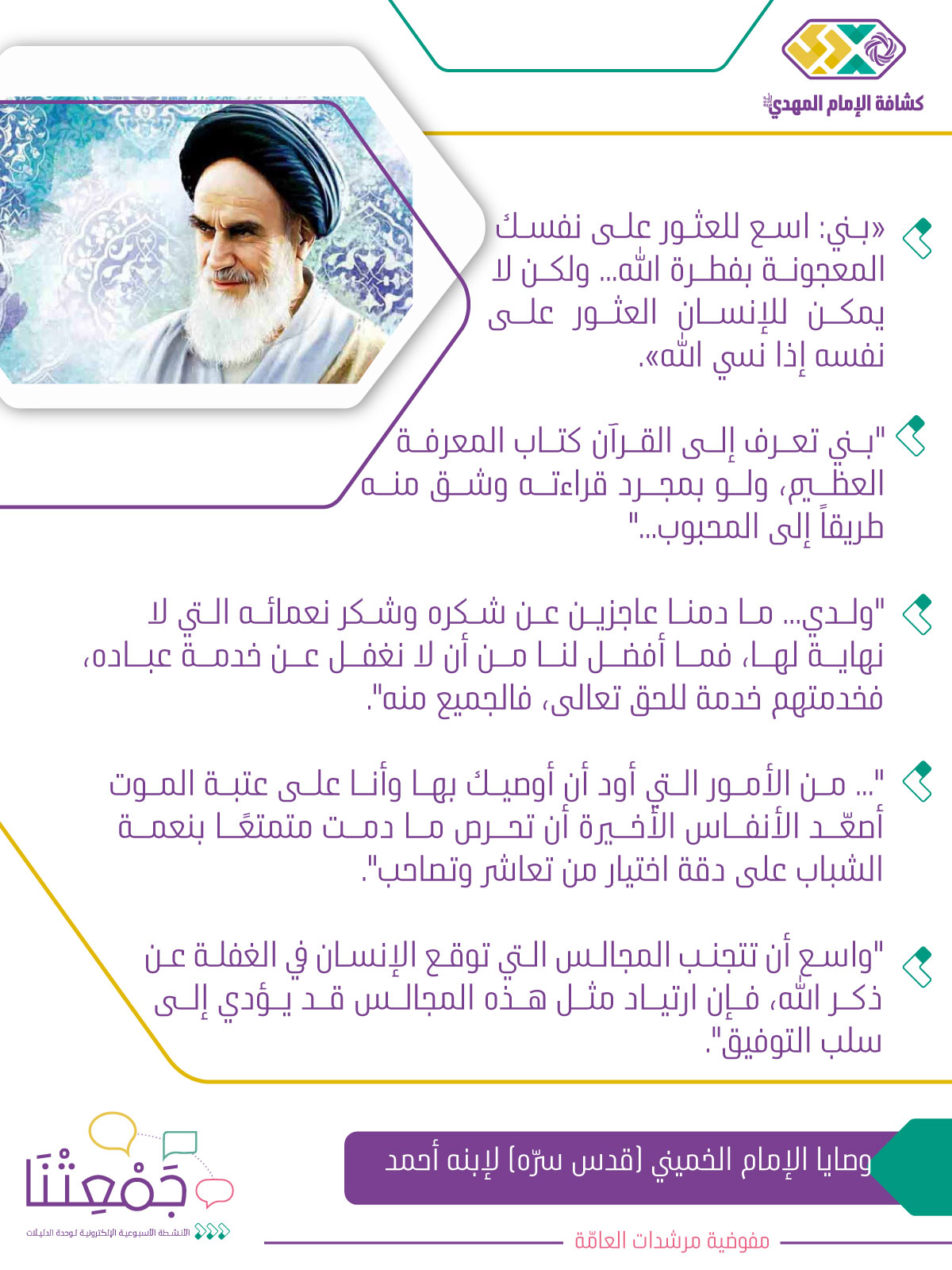 - سنبقى للإمام أوفياء، لطريق الإمام وفكر الإمام ونهج الإمام وعزم الإمام