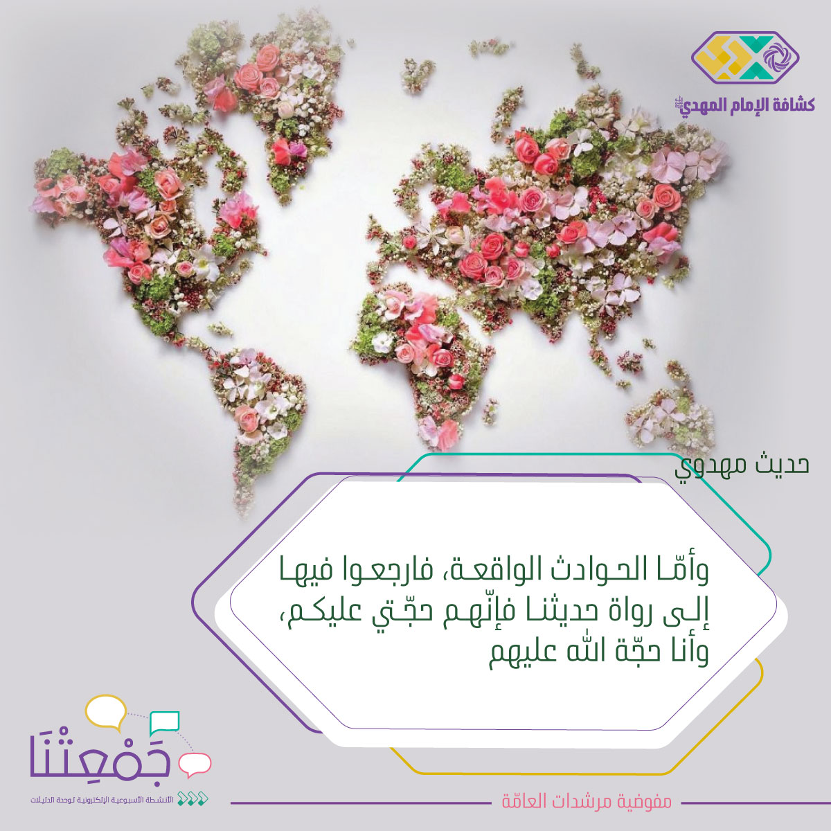 • حديث مهدوي: "وأمّا الحوادث الواقعة، فارجعوا فيها إلى رواة حديثنا فإنّهم حجّتي عليكم، وأنا حجّة الله عليهم".