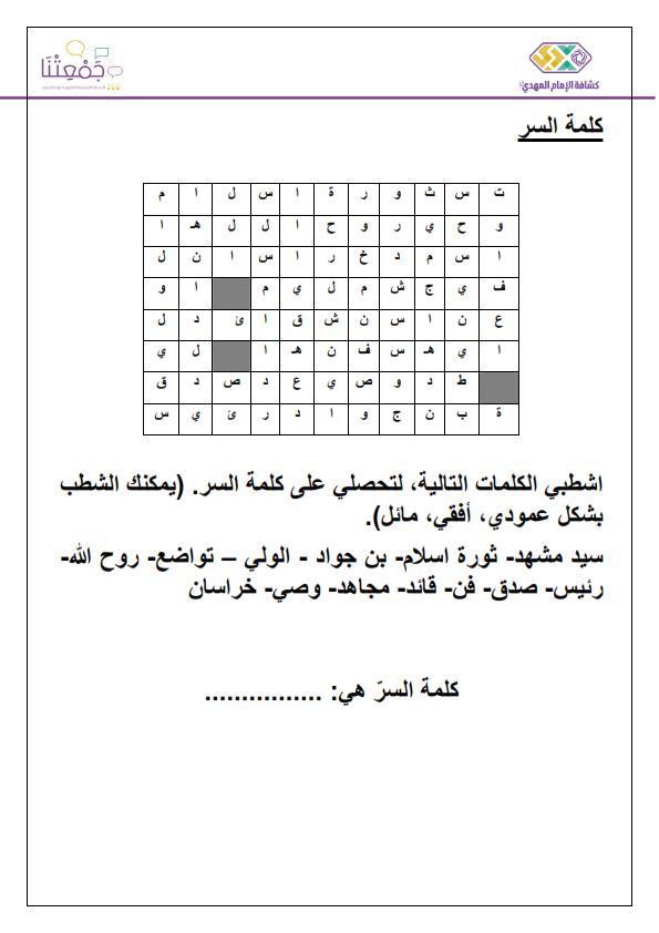معرفة إسم النشاط (من خلال لعبة كلمة السر، يتبع فلاش تأكيد للاسم)
