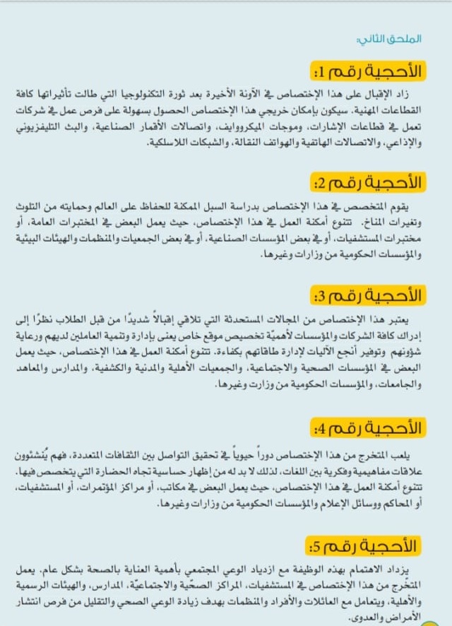 إجراء مقابلة إرشادية عبر تطبيق: واتس أب أو زووم مع جهة تعنى بالإرشاد والتوجيه. أو اختيار اكثر من ٣ اختصاصات مطلوبة عند هذه الشريحة العمرية، والشرح عنها. |