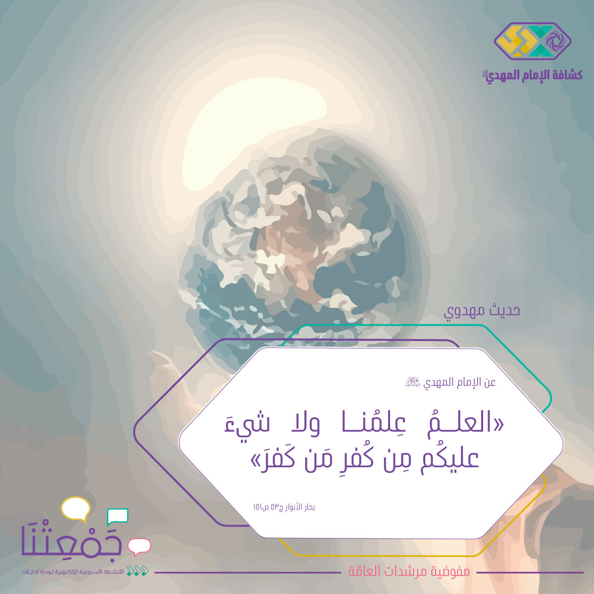آية قرآنية مباركة /حديث شريف والسلام على قائم آل محمد عج . والترحيب |