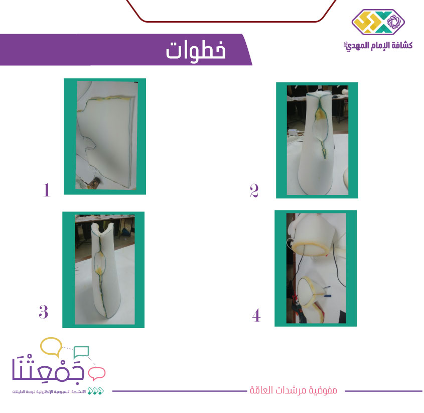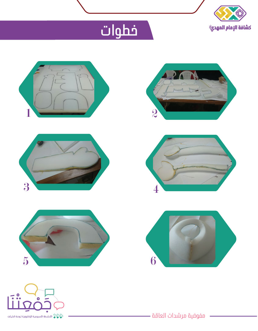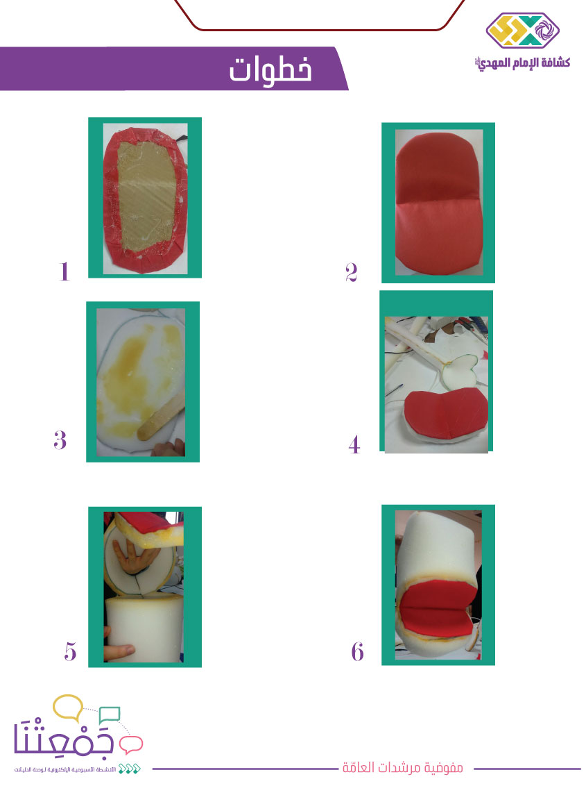 • رسم البترونة المعدة مسبقًا على لوح من الإسفنج مقاس 2 أو 3 سم. (ارسال صورة نموذج البترونة والطلب من الأفراد سحبها على ورقة a4، كي يتم قص الاسفنجة عليها بشكل دقيق).