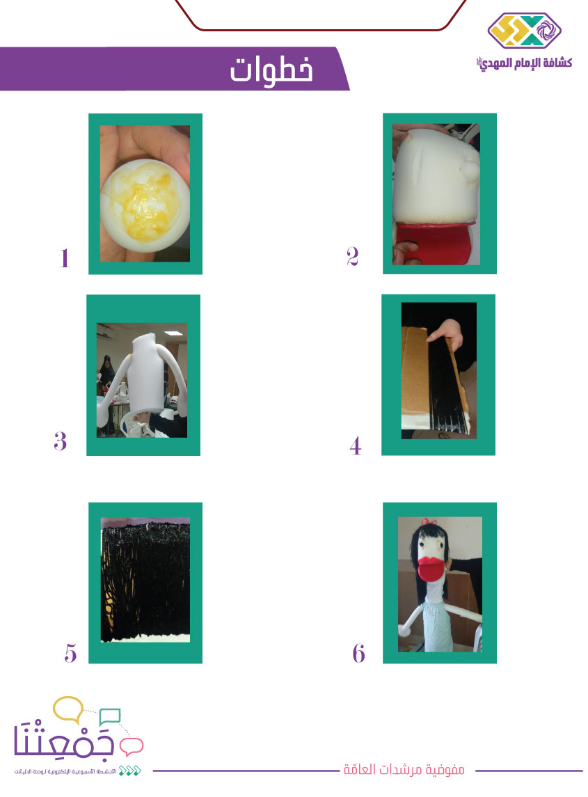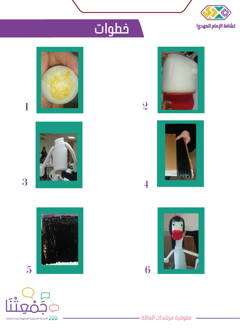 • يـ/تعرض القائد/ة فيديو يوضح خطوات صنع الدمية أو يتم ارسال صور توضح خطوات الصنع.
