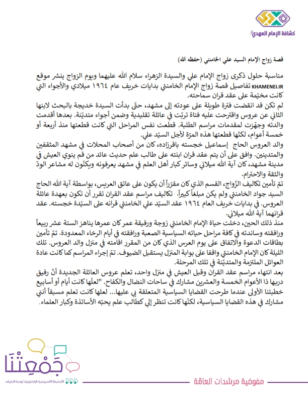 قصة زواج الإمام السيد علي الخامنئي (حفظه الله)