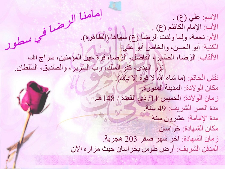 شذرات العترة عليهم السلام >> لإمام الرضا (عليه السلام) في سطور