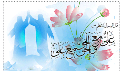 ويرتفع كف علي راية حق ترفرف بسطور الولاية على مرأى الزمان بحروف مباركة :