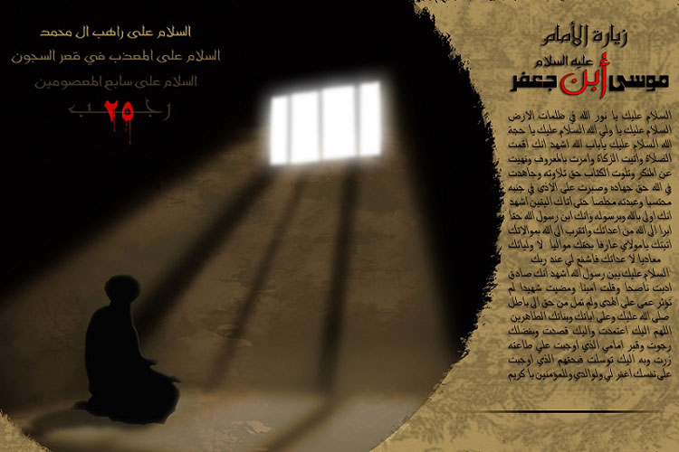 اَللّـهُمَّ صَلِّ عَلى مُحَمَّد وَاَهْلِ بَيْتِهِ، وَصَلِّ عَلى مُوسَى بْنِ جَعْفَر وَصِيِّ الاَْبْرارِ، وَاِمامِ الاَْخْيارِ، وَعَيْبَةِ الاَْنْوارِ، وَوارِثِ السَّكِينَةِ وَالْوَقارِ وَالْحِكَمِ وَالاْثارِ الَّذي كانَ يُحْيِي اللَّيْلَ بِالسَّهَرِ اِلَى السَّحَرِ بِمُواصَلَةِ الاْسْتِغْفارِ، حَليفِ السَّجْدَةِ الطَّويلَةِ، وَالدُّمُوعِ الْغَزيرَةِ، وَالْمُناجاةِ الْكَثيرَةِ، وَالضَّراعاتِ الْمُتَّصِلَةِ، وَمَقَرِّ النُّهى وَالْعَدْلِ وَالْخَيْرِ وَالْفَضْلِ وَالنَّدى وَالْبَذْلِ، وَمَألَفِ الْبَلْوى وَالصَّبْرِ، وَالْمُضْطَهَدِ بِالظُّلْمِ، وَالْمَقْبُورِ بِالْجَوْرِ، وَالْمُعَذَّبِ في قَعْرِ السُّجُونِ، وَظُلَمِ الْمَطاميرِ ذِي السّاقِ الْمَرْضُوضِ بِحَلَقِ الْقُيُودِ، وَالْجِنازَةِ الْمُنادى عَلَيْها بِذُلِّ الاِْسْتِخْفافِ، وَالْوارِدِ عَلى جَدِّهِ الْمُصْطَفى وَاَبيهِ الْمُرْتَضى وَاُمِّهِ سَيِّدَةِ النِّساءِ بِإرْث مَغْصُوب وَوَلاء مَسْلُوب وَاَمْر مَغْلُوب وَدَم مَطْلُوب وَسَمٍّ مَشْرُوب، اَللّـهُمَّ وَكَما صَبَرَ عَلى غَليظِ الِْمحَنِ وَتَجَرَّعَ غُصَصَ الْكُرَبِ، وَاسْتَسْلَمَ لِرِضاكَ وَاَخْلَصَ الطّاعَةَ لَكَ، وَمَحَضَ الْخُشُوعَ، وَاسْتَشْعَرَ الْخُضُوعَ، وَعادَى الْبِدْعَةَ وَاَهْلَها وَلَمْ يَلْحَقْهُ في شَيء مِنْ اَوامِرِكَ وَنَواهيكَ لَوْمَةُ لائِم، صَلِّ عَلَيْهِ صَلاةً نامِيَةً مُنْيفَةً زاكِيَةً تُوجِبُ لَهُ بِها شَفاعَةَ اُمَم مِنْ خَلْقِكَ، وَقُرُون مِنْ بَراياكَ، وَبَلِّغْهُ عَنّا تَحِيَّةً وَسَلاماً، وَآتِنا مِنْ لَدُنْكَ في مُوالاتِهِ فَضْلاً وَاِحْساناً وَمَغْفِرَةً وَرِضْواناً، اِنَّكَ ذُوا الْفَضْلِ الْعَميمِ، وَالتَّجاوُزِ الْعَظيمِ، بِرَحْمَتِكَ يا اَرْحَمَ الرّاحِمينَ .