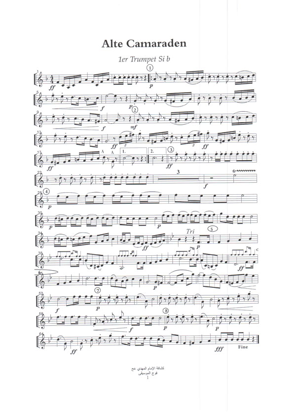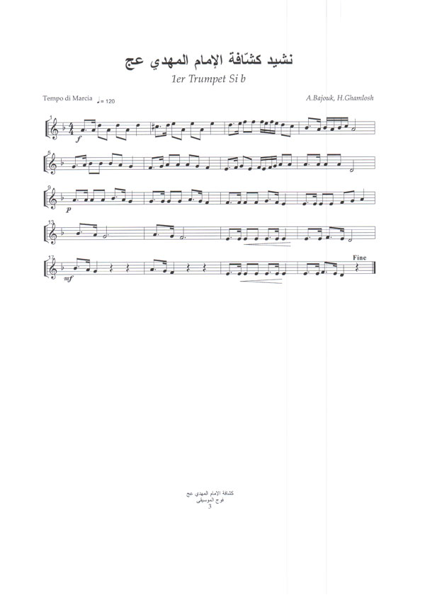 نوتة لنشيد جمعية كشافة الإمام المهدي (عج) مكتوية بآلة الترومبات (Trumpet ):