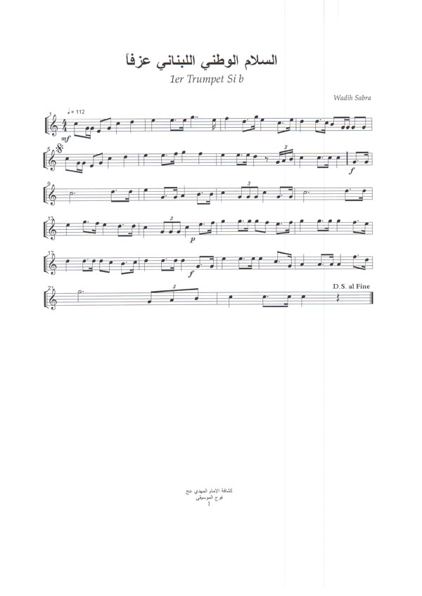 نوتة لنشيد السلام الوطني مكتوية بآلة الترومبات (Trumpet ):