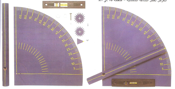 بهذه الربعية ( وهي أداة تستخدم في الفلك والملاحة لقياس الارتفاع وتتألف من قوس مقسم إلى 90 درجة ) تستطيع أن تجد خط العرض حيث تعيش, من خلال النظر إلى النجوم ليلاً. فأنت بحاجة إلى معرفة خط العرض لعمل الساعة الشمسية.