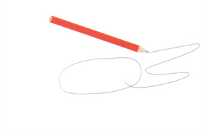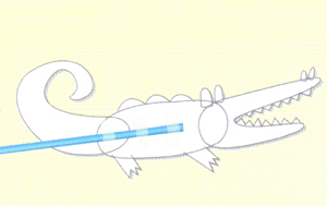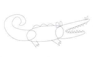 3.لنصنع دمية التمساح، نقوم برسم جسم طويل على قطعة من الكرتون، ثم نضيف إليه الفكين والذيل.
