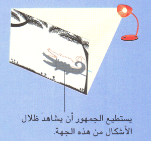الظلال هي الأماكن التي يُحجب الضؤ عنها. بإمكاننا القيام بعرض لظِلال الدمى المتحركة بإستخدام دمى تمنع وصول الضوء. تسقط ظلال هذه الدمى على شاشةٍ، بحيث يستطيع الجمهور أن يشاهدها من الجانب الآخر للشاشة، تجربة مسلية ومفيدة لا تتأخروا عن القيام بها.