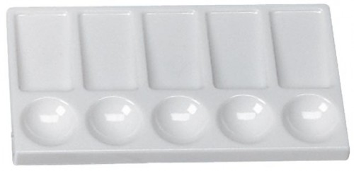 لوحة الألوان هي الأداة المثالية لمزج الأطلاء. يوضع الماء النظيف في الأوعية المدورة، و من ثم نمزج الألوان في المقاطع المسطحة الخفيفة الإنحدار في الأسفل.