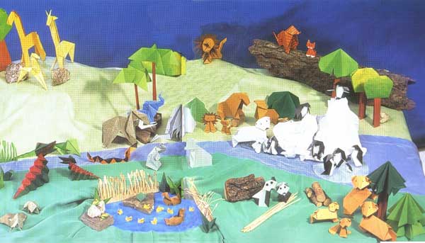 إن تشييد حديقة الحيوانات مع عدة أماكن سكن للحيوانات يبدو متعة كبيرة.لكن هذا يتطلب الكثير من العمل، فكل شيء في حديقة حيوانات الأوريغامي يجب أن يطوى من الورق: الحيوانات و الغابات و الأشجار. يمكن صنع الحقول من القماش الأخضر. أما المياه فيمكن صنعها من وشاح من حرير أو من مرايا صغيرة. كما يمكن استعمال ورق مقوى مجعد أزرق اللون لإعطاء لمعان أكثر للماء و تحويله إلى صفائح ذات مظهر جذاب. يمكن إستعمال الأحجار و بلح البحر و قطع من لحاء الشجر كمواد إضافية في الحديقة. كما يمكن إيجاد الكثير من الأشياء التي يمكن إستعمالها في المنزل. علب الكرتون الصغيرة قد تستعمل لبناء بيوت الحيوانات و شبكات الفرن قد تستعمل للحيوانات المتوحشة.