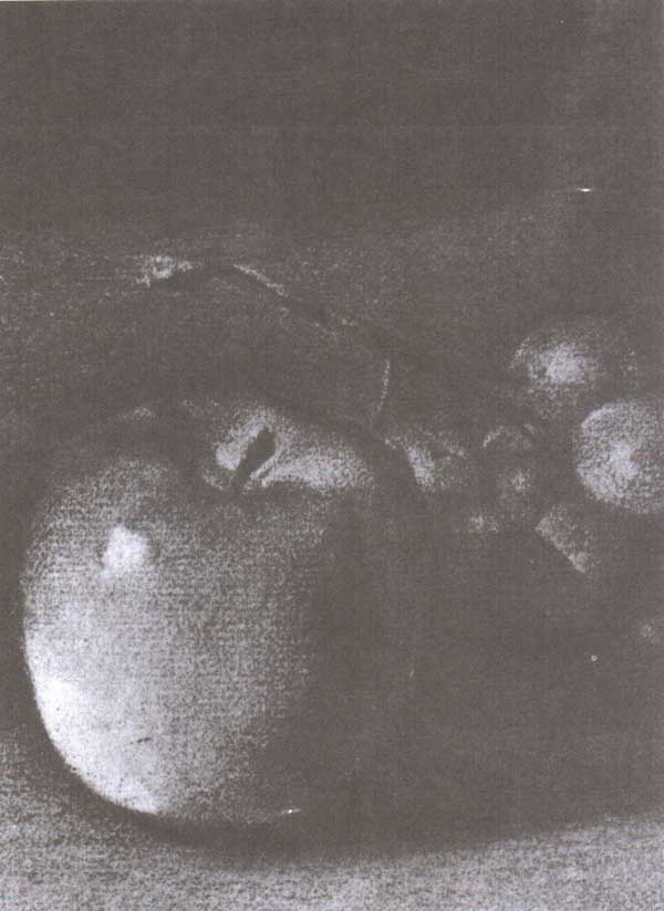 5- مرحلة التطوّر : في اللحظة التي نقوم فيها بدعك مجمل العمل الفني دون تدخل قلم الفحم، فقط الأصابع و المدعكة و ذلك بنشر المساحة السوداء و نقلها إلى الأماكن الواضحة، فنحصل على نتيجة وهي أنه لا يكون اللون الأبيض الناصع له مكان في اللوحة تقريباً.