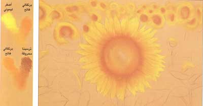 كيف نرسم أزهار دوار الشمس بأقلام الباستيل