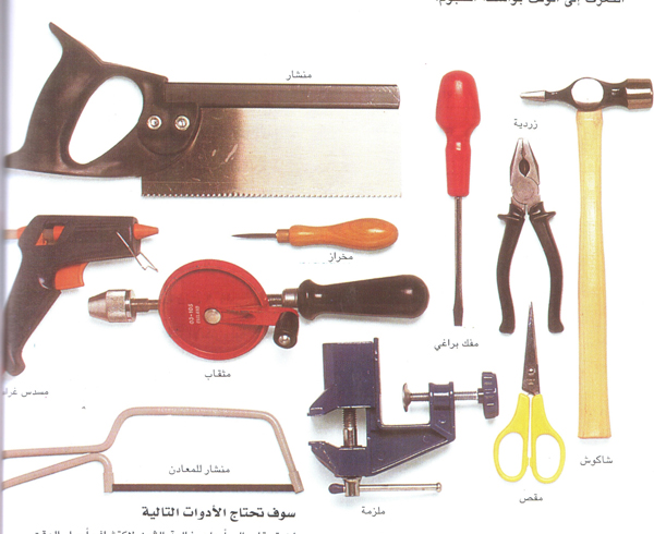 الأدوات الحادة يمكن أن تشكل خطورة عليك! كن حذراً دوماَ عند استخدامك لهذه الأدوات, واطلب من الكبار تقديم المساعدة إذا احتجت إليها. تأكد من تثبيت أي شيئ تريد قطعه أو ثقبه, بشكل قوي لئلا ينزلق. إن وجود منضدة صغيرة لتثبيت القطع التي تريد قطعها يساعدك كثيراً.
