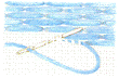 5- نطرز الآن بالخيط الأبيض، بغرزة الكنفا العادية المساحة التي تلي الخلفية, صفاً واحداً باللون الأزرق الفاتح, ثم بالأبيض العاجي كما في الشكل.