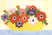 ستضفي سلة أزهار جميلة على جدران منزلنا مسحة تزينية رائعة. ويمكنكننا تطريزأزهار متنوعة ومنها أزهار شقائق النعمان عن طريق غرز طولية وعرضيّة مستقيمة, وكل ما نحتاجه هو اتباع المخطط, ثم نقوم بتطريز الأزهار بخيوط ملونة بألوان الأزهار الطبيعية, وتطرز السلة الصفراء الذهبية على أرضية زرقاء باهتة, ويمكن تغيير الألوان بما يتناسب وديكور الغرفة.