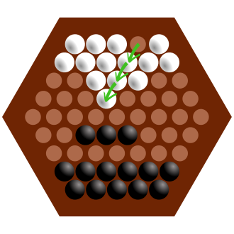 تتألف هذه الّلعبة من لوح ذو شكل سداسي فيه 61 فتحة دائرية.