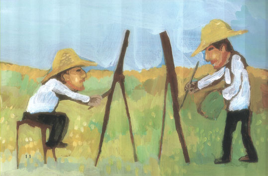 ...لقد فكرت كثيراً بلوحاتك التي رأيتها فوجدت أن الرسم الإنطباعي السائد بباريس مختلف عن عن رسومك, فتلك الصور مشرقة ومفعمة بالنور, آمل أن تُدرك أنه يوجد بالفعل عالم آخر في الرسم مليئ بالنور.