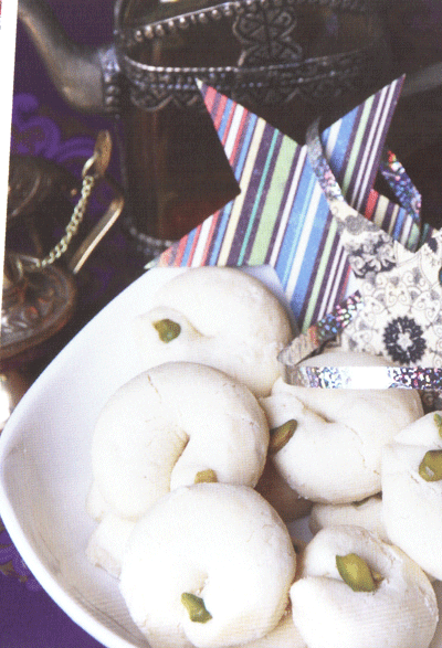 2- نصنع منها أشكال عديدة ربما على شكل أصابع أو على شكل دائري ومن ثم نزينها في الوسط بحبة فستق.