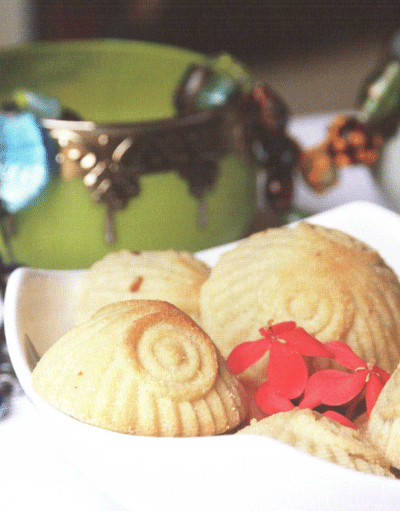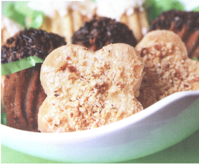 4- نضعها في صينية مدهونة بالزبدة في الفرن حتى يصبح لونها مائلاً الى الأحمر وتصبح جاهزة للأكل بعد أن تبرد.