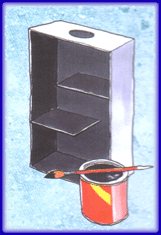 2. ندهن المربعين من الوجهين وعلبة الأحذية من الداخل بطلاء أسود للتقليل ما أمكن من انعكاس الضوء.
