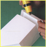 2. نطوي الخطوط المنقطة في النموذج المرسوم على الورق المقوى إلى الداخل.