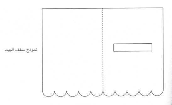 4. نقص الخطوط المستقيمة المبينة على نموذج سقف البيت المرفق، ونعيد رسمه على الورق المقوى، ثم نقص الورق المقوى (لا ننسى أن ننسخ الخطوط المنقطة على الورق المقوى).