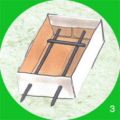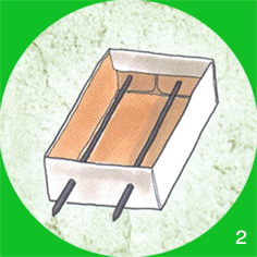 2- اقطع عودين من عيدان الغرافيت بحيث يزيد طول كل واحد منهما بمقدار 1سم تقريباً على طول صينية علبة الكبريت. اخدش السطح العلوي لكل عود بواسطة المقص لتخشينه. أدخل العودين في ثقوب الصينية بحيث يكون سطحاهما الخشنان باتجاه الأعلى.