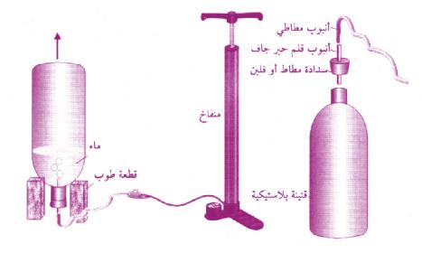 • اضغط الهواء في القنينة باستخدام المنفاخ حتى يزداد الضغط داخلها لحد كافٍ فيدفع الماء إلى الأسفل و تنطلق القنينة بسرعة كبيرة إلى الأعلى.