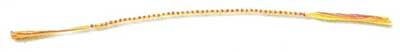 نلف الاسوارة حول معصمنا و نربط الذيلين في عقدة مزدوجة. إذا بقي الذيلان طويلان بعد ربط العقدة يمكننا أن نقص الأطراف لتقصيرهما.