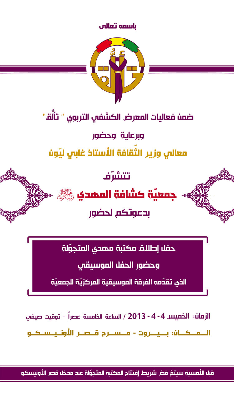 المواضيع الإعلامية >> دعوة الحفل الموسيقي وإطلاق المكتبة المتجولة