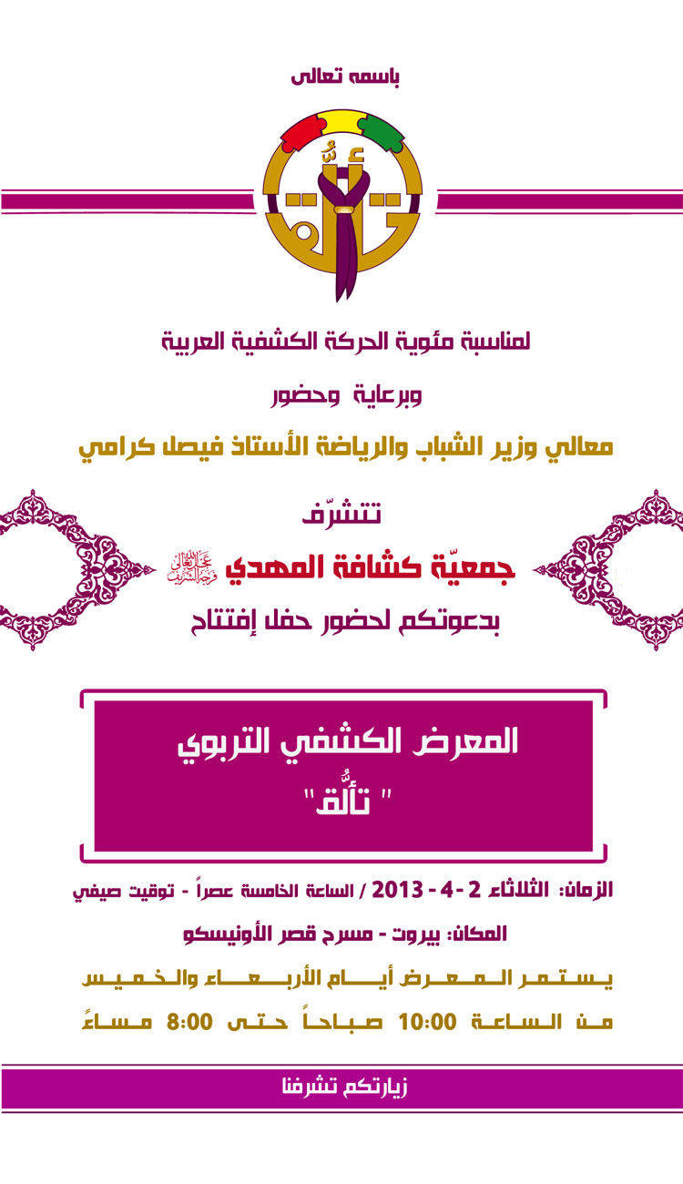 دعوة افتتاح المعرض الكشفي التربوي 2013 "تألُق"