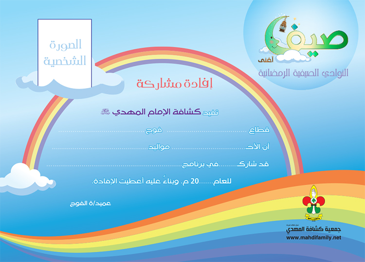 الحملة الصيفية الرمضانية - الجزء الرابع الحملة الصيفية الرمضانية 2013 التي أصدرتها كشافة الإمام المهدي (عجل الله فرجه) للإستفادة منها في أنشطة الأفواج خلال النوادي الصيفية الرمضانية: