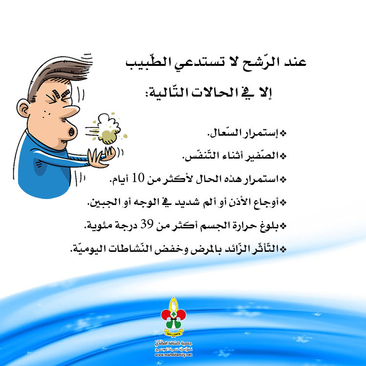 إنّ الرّشح لا يستدعي عموماً استشارة الطبيب، باستثناء الحالات التّالية: