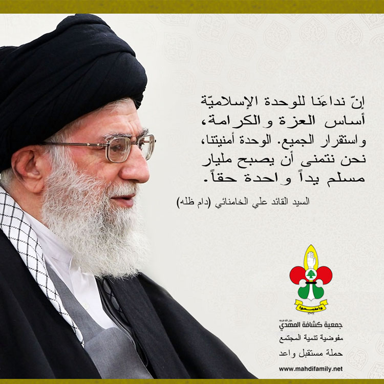 "إنّ نداءنا للوحدة الإسلاميّة أساس العزّة والكرامة، واستقرار الجميع. الوحدة أمنيتنا، نحن نتمنّى أن يصبح مليار مسلم يداً واحدة حقّاً".